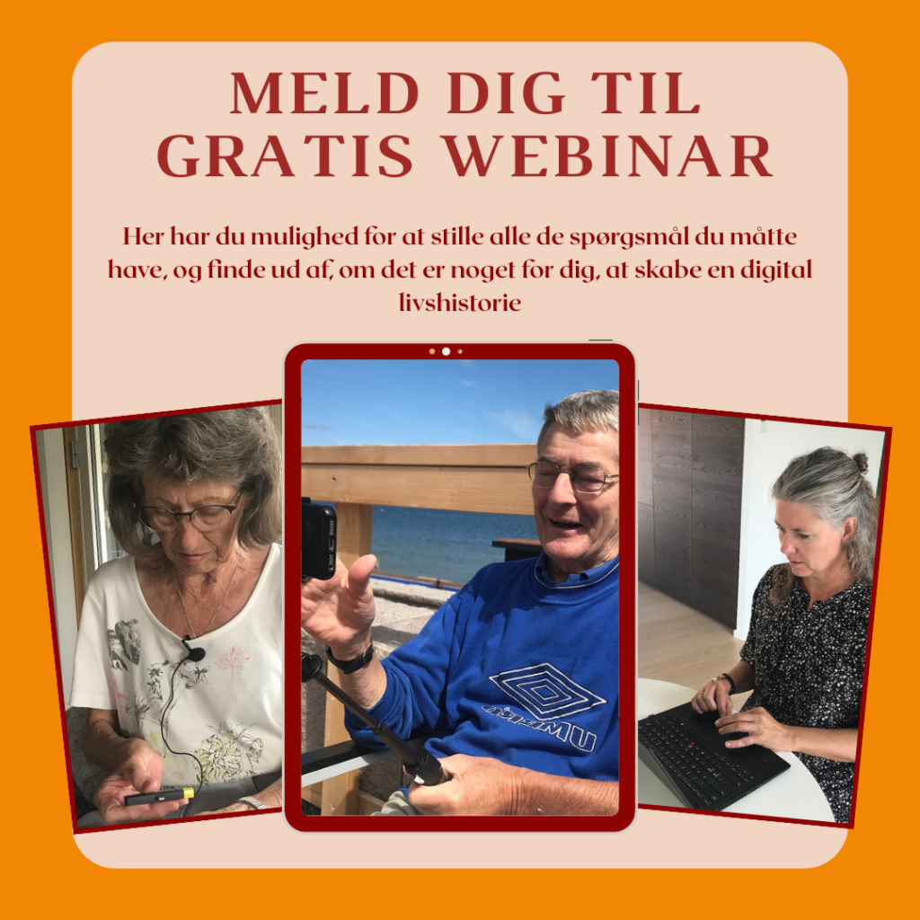 Med kurset “Din digitale livshistorie” guider jeg dig trygt og enkelt igennem processen med at optage dine livserindringer på video – uden at du skal skrive en linje eller kunne en masse teknik.